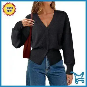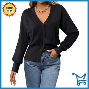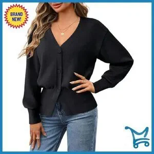 Long Sleeve V-Neck Peplum Cardigan Sweater Open Front Knitted
