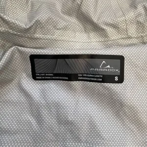 The Paradox Windbreaker is a stylish and practical jacket designed for women in size small. Made with lightweight nylon material in a beautiful teal blue color, this windbreaker features a full zip closure and long sleeves for added comfort and warmth. It is perfect for outdoor activities or casual everyday wear, providing both style and functionality in a chic design.