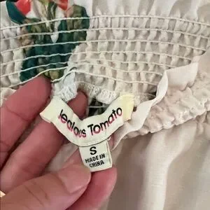 Light pink shorts with a smocked elastic waist. Features a colorful floral print in green and coral tones. Soft, flowy fabric. Easy, breezy summer piece.