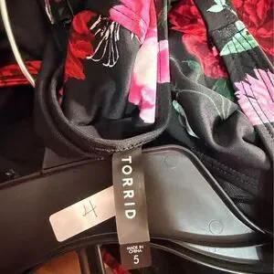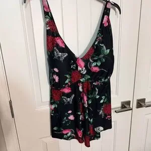 5X Swim Top Torrid Black Floral Skull pit-pit 25”relax to 30” stretched C7379