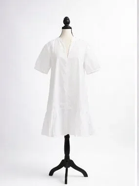 Crisp, lightweight, and effortlessly feminine, this J.Crew Delilah dress is made from breathable cotton poplin—perfect for warm-weather days. Designed with a relaxed shift silhouette, it features a flattering split neckline, soft puff sleeves, and a flouncy ruffle hem for a playful finish.