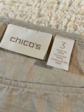 Chico's Tan 100% Linen Lagenlook Relaxed Fit Cana Top Beachy Size 3 /US XL