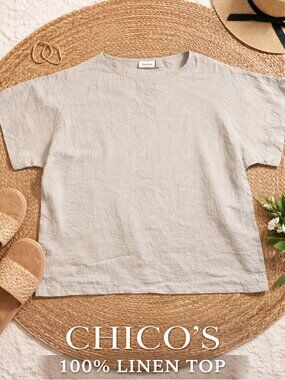 Effortless and breathable, this Chico’s 100% linen top is the perfect relaxed, beachy staple