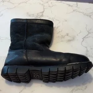 Men's UGG Black Leather Fleece-Lined Boots size 9