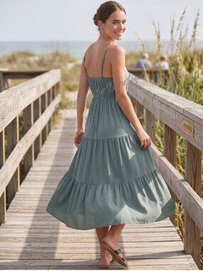 Zenana Free Flowing Ash Jade Sweetheart Tiered Ruffle Spaghetti Strap Sundress.