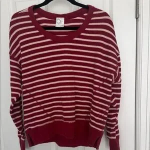 OFFLINE by Aerie Striped Cropped Sweatshirt Red Cream Size S