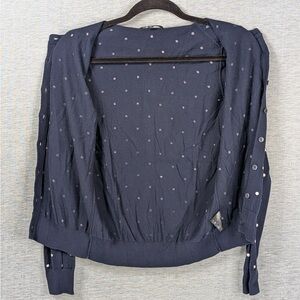 Good condition, light sign of wear Pls refer to photos for overall condition, zoom in as needed Tagged as size M, but this is in Asian sizing as this was bought in Asia. Fits more like a US XS. Soft knit sweater with polka dot pattern. Crewneck style. Lightweight layering piece. Casual and polished look. 100% cotton Slim fit Full button front closure Navy colour New to Poshmark? Sign up for an account and use my referral code THEVSCLOSET to receive a $15 credit that you could use towards your first purchase! ☺️