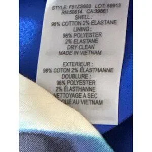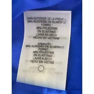 - Shell: 98% cotton, 2% elastane; lining: 98% cotton, 2% elastane