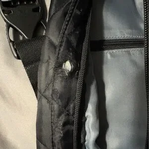 Bag has a frayed spot on the zipper cover flap. Doesn’t affect use of the zipper and cannot be seen unless the flap is flipped over.