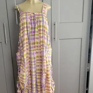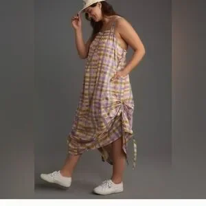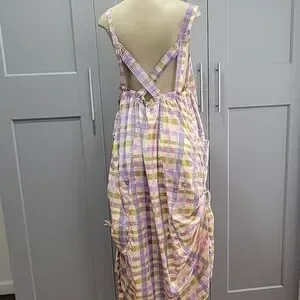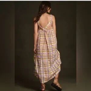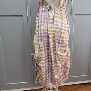 Daily Practice Plaid Halter Midi Dress in Lavender and Yellow