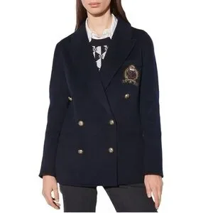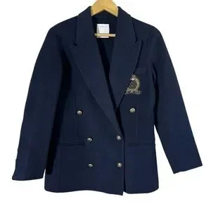 SANDRO PARIS Navie Double-Faced Chest Patch Wool Blazer. It’s timeless, cozy, and nautical-inspired! This Sandro Navie Double-Faced Chest Patch Wool Blazer is a winter wardrobe classic featuring a double-breasted front, welt pockets, and an embroidered chest patch. Crafted from pure wool, it makes for a sleek cold-weather layer. It has a vintage feel but a rather modern tailored silhouette. 100% wool. Size 36 = US 4 according to size chart.