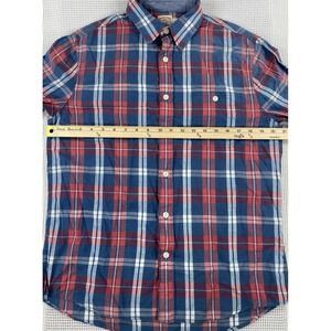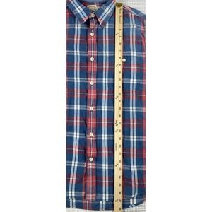 Faherty Indigo Dyed Plaid Button Up Long Sleeve Shirt Cotton Men's Small