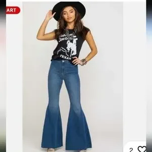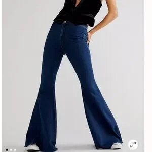 We The Free Float On Dark Wash High Rise 70s Style Flare With Stretch and a Tie Back to Cinch Waist Great Condition Hippie Festival Bohemian Rave 90s Y2K Free Spirit Indie Sleeze Winter Fall