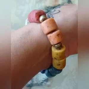 African Kobo Recycled Glass Beaded Bracelet 🩵🧡💙🤍💫