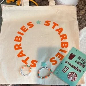 Starbies x Taylor Swift Canvas Tote Bag in Natural with Orange Logo