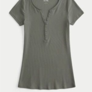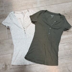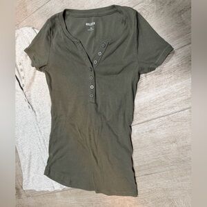 NWOT Hollister Set of 2 Henley Short Sleeve Tops - Olive Green & Light Heather