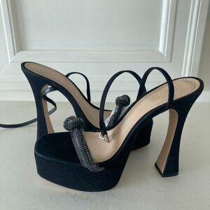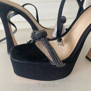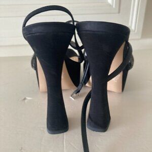 Schutz Peaky Embellished Black Suede Heeled Sandals Sz 9.5