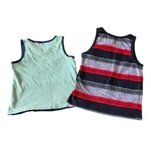 Outfit your little one for warm weather with this two-pack of sleeveless tank tops. This set includes a Disney Jumping Beans Mickey Mouse tropical print tank and a Micros striped athletic-style tank. Both pieces are in excellent pre-owned condition with no visible flaws.