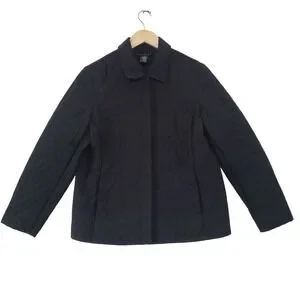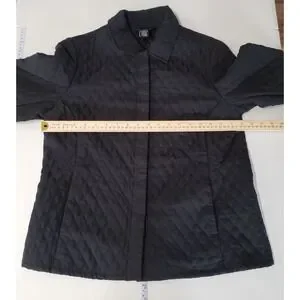 Vintage 90s Quilted Jacket Black Button Front Collared Womens Size 12 Streetwear