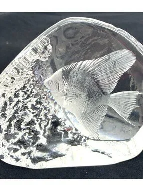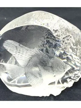 Art Glass Angel Fish Paperweight Clear Sweden Signed Numbered 4" Tall