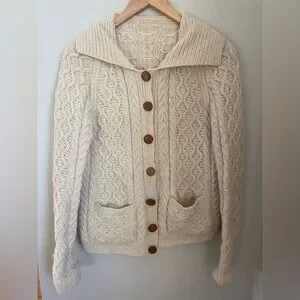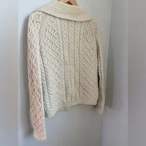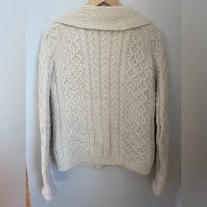 Hand Knit Cottagecore Fisherman Cardigan Cream Sz Medium Grandmacore Cable Knit