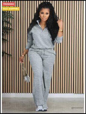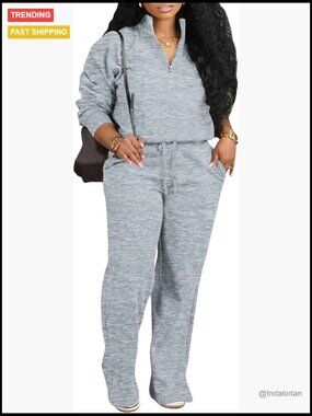A modern, comfortable two-piece lounge set designed for versatile wear. Features a long sleeve half zip sweatshirt and high-waist drawstring joggers with pockets, ideal for lounging, fitness, travel, or casual daily activities.