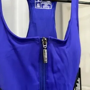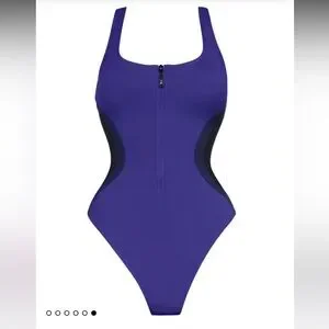 TA3 Scoopy Seamed Zip Sculpting One Piece NWT XS XLong Contour Blue Black