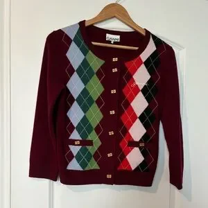 GANNI Argyle Wool-Cashmere Cardigan
