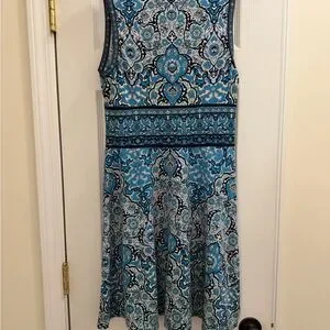 Max StudioSleeveless Blue Paisley V-Neck Women's Dress