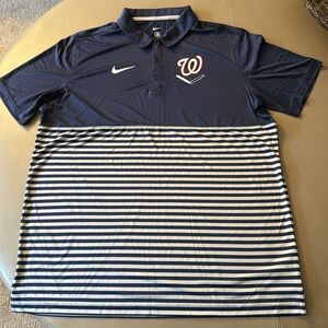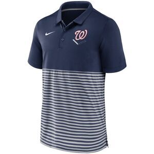NWOT Nike Washington Nationals Men’s Navy/Gray Home Plate Striped Polo. Size XL