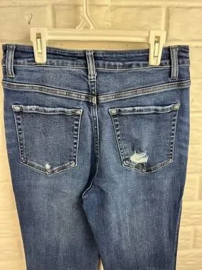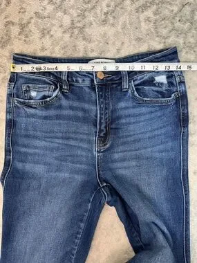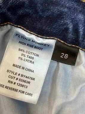 FLYING MONKEY HIGH RISE BOOT CUT DENIM BLUE JEANS RAW HEM DISTRESSED SZ 28