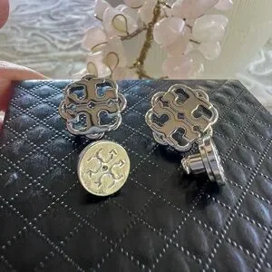 Tory Burch Minimalist Openwork Floral Logo Metal Stud Earrings
