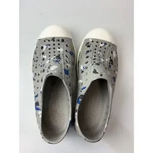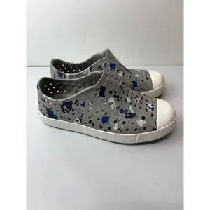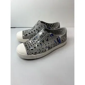 Native Jefferson Sneakers Kids Size C13 Grey Blue Paint Splatter Slip On Shoes