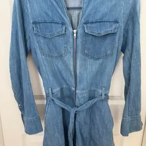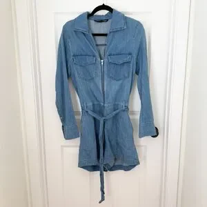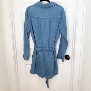 Women Veronica Beard Keenan Utility Chambray Romper in Denim Blue Size Medium