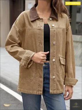 Oversized Denim Jacket Casual Contrast Canvas Collar Button Down Streetwear