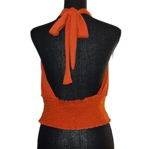 Elevate your wardrobe with this stylish Free People halter top in a warm rust color. Designed for a flattering fit, this size medium top features a gathered neckline and a smocked waist for added texture and style. Perfect for a night out or a casual day, pair it with your favorite jeans or a skirt for a versatile look. Embrace comfort and fashion with this must-have.