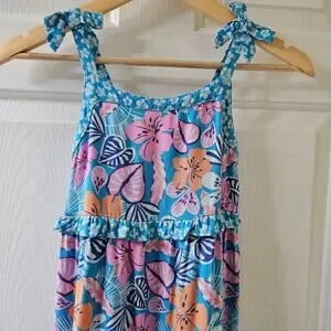 Kat & Jack girls’ dress (7–8) with bright floral print and tiered ruffles.