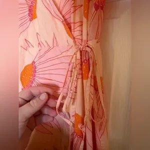 Stunning Kate Spade New York “Falling Flower” wrap midi dress in a pink and orange floral print 🌸