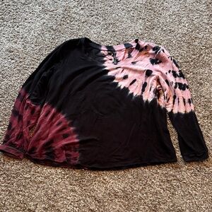 Tie-Dye Black and Pink Long Sleeve Crew Top