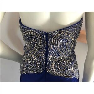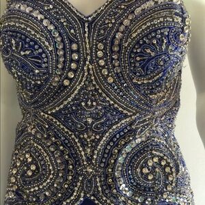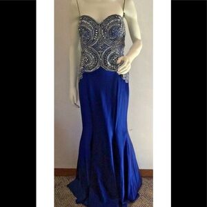 Beaded strapless Blue Silver Maxi Dress Size 44 (US 12)