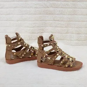 Studded Goddess Gladiator Ankle Sandals Flats Sybil