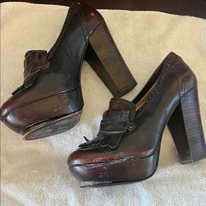 FRYE Naiya Kiltie Moc High Heeled Pumps 7M FLAWED