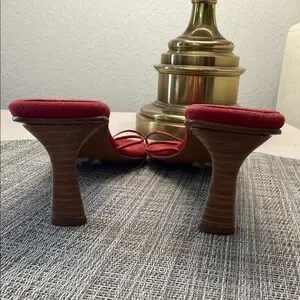 Red Suede Star-Accent Heeled Sandals by Goffredo Fantini