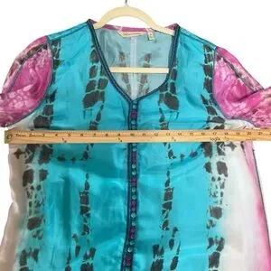 Soft Surroundings Silk Tie-Dye Tunic Top Blue Pink Sheer Button Front Size M