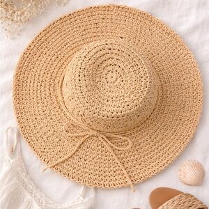 LC Lauren Conrad Wide-Brim Woven Straw Sun Hat - Blush NWT
