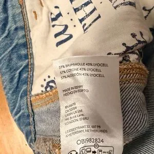 Light blue denim with classic five-pocket styling. High-rise waist and button fly. Subtle faded finish for a worn-in vibe.