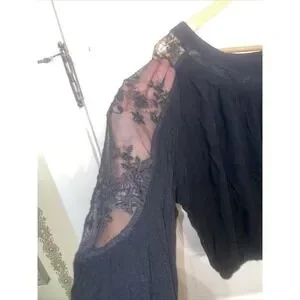Black Long Sleeve With Embroidery Along Sleeves And Neckline. Small