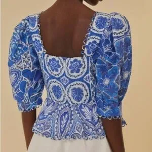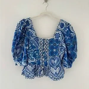 FARM RIO Blue Tile Dream Blouse M