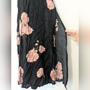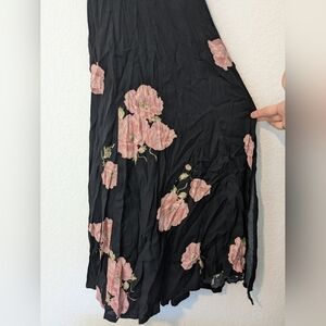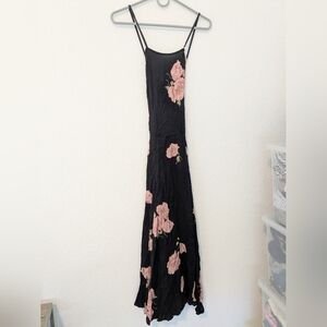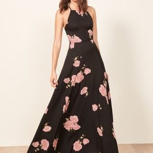 Reformation Black Pink Floral Sleeveless Criss Cross Strap Open Back Side Slit Flowy Myrtle Maxi Dress Wedding Evening.