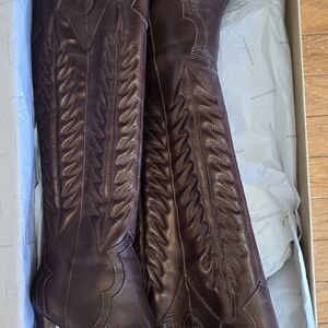 Anthropologie Brown Leather Knee-High Western Stiletto Boots. Brand New.